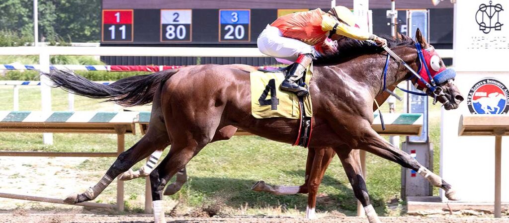 Forever Souper Takes $100,000 Prince George’s County Alla Breve Upsets $75,000 Jameela in Stakes Debut BALTIMORE – Ken Ramsey’s Whenigettoheaven dueled with stubborn pacesetter Tidewater the length of the stretch before sticking his neck out at the wire and providing trainer Nolan Ramsey with his first career stakes victory in the $75,000 Ben’s Cat. It […]