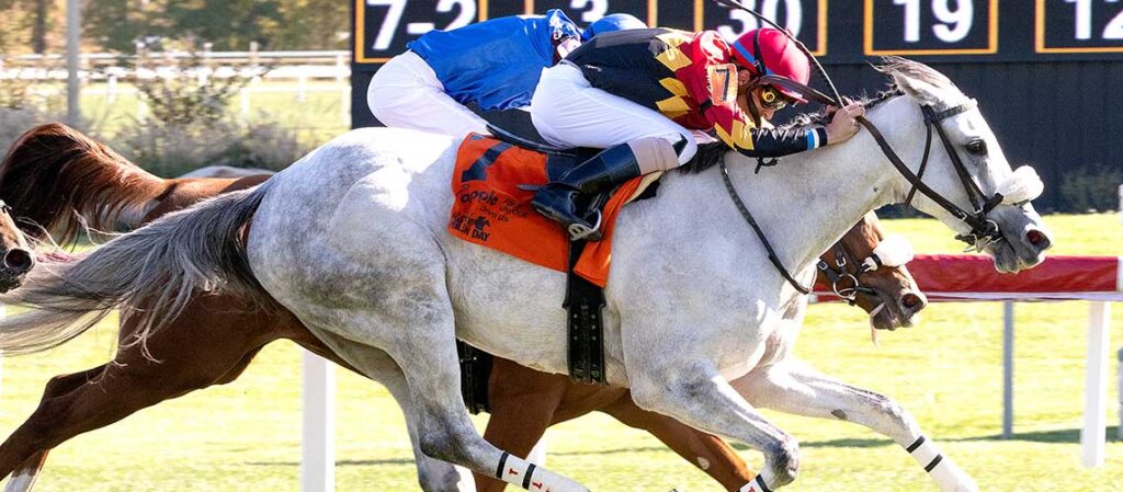 Miss Harriett Gamely Wins $100,000 Lassie at 60-1 Odds BALTIMORE – Behind a patience and well-timed ride by jockey Xavier Perez, Catahoula Moon split horses down the stretch to win the $100,000 Maryland Million Nursery by 4 ¾ lengths over Prado Road. Trained by John Robb, Catahoula Moon covered the six furlongs in 1:12.24. The […]